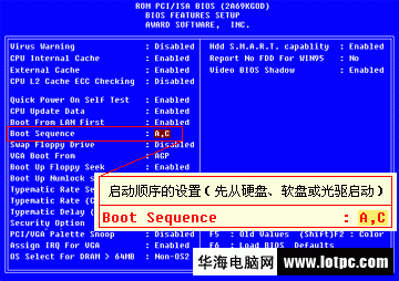 如果設置成A,C,則電腦啟動時就會先檢查A驅動器中插沒插系統盤,如果插了的話,電腦就從軟盤中讀取DOS系統信息,啟動電腦;
