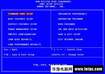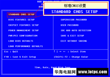 將光標移到第一項STANDARD CMOS SETUP上,按回車。