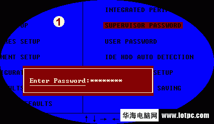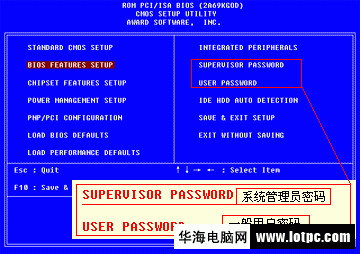 在Bios里有兩個設置密碼的地方。一個是高級用戶密碼,一個是一般用戶密碼。