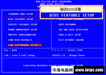 將光標移到第二項“BIOS FEATURE SETUP”,回車。
