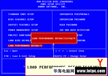 將光標用上下箭頭移到這一項,然后回車,屏幕提示“是否載入默認值”。