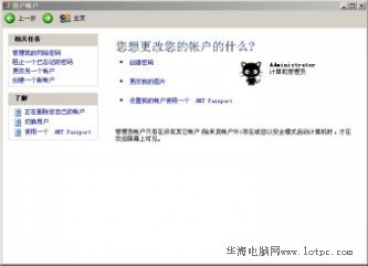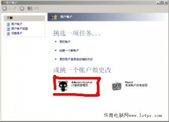 然后我們點擊“用戶賬戶”并跳到”用戶賬戶“界面,點擊默認賬號administrator或您之前設置的賬號,點擊下面我們以紅色框框起來的。如下圖
