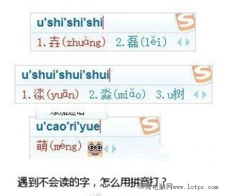 如果我們電腦上有不會讀字我們要怎么打出來呢,我們可以使用搜狗輸入法U+拆字拼音法,比如比較少見的字,“壵”,“淼”我們可以通過u+文字拆分的方法打出來,輸入ushuishuishui,是不是“壵”就出來了?