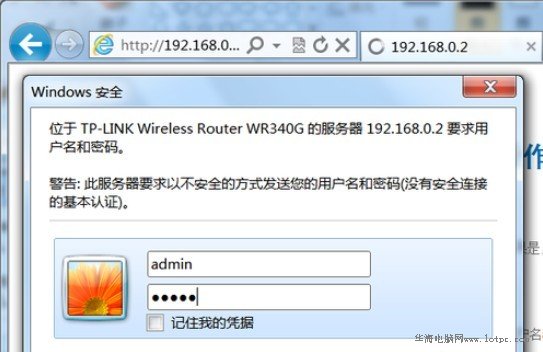 今天我們以TP-LINK路由器示范,其他設置都是差不多的,假設將用于連接外部網絡的路由器當作第一臺無線路由器,我們將此路由器作為主路由器。其無線名稱(即SSID)定義為TP-A,其IP為192.168.0.2。主路由器TP-A需要開啟DHCP服務,無需啟用WDS功能。在您的瀏覽器輸入主路由器的管理后臺IP為:http://192.168.0.2,然后輸入你該路由器的賬號密碼,一般賬號密碼都是admin。不知道的朋友,(一般路由器背面有賬號密碼)再點擊“確定”進入后臺: