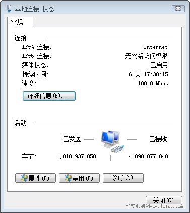 在上圖“查看活動網絡” →”網絡“→"連接"→點擊”本地連接“。