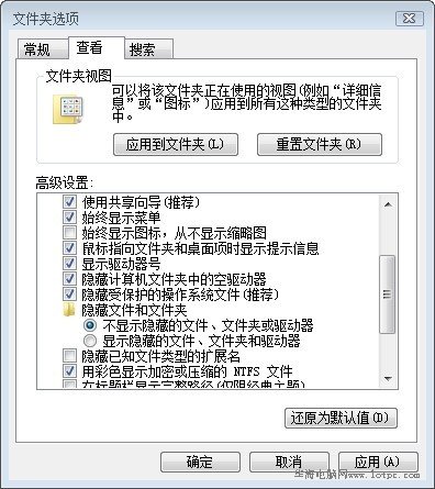 不可以刪除,通過上文介紹了解到desktop.ini是系統文件,假如您真不想看見它,可以在任意文件夾點擊菜單欄中的“工具(T)”→“文件夾選項(O)”→ 點擊“查看”→最后點擊“還原為默認值(D)”確定即可(因為系統默認的時候都是隱藏的,這招菜鳥很實用),對于稍微了解電腦知識的朋友,可以勾選“隱藏受保護的操作系統文件(推薦)”即可。
