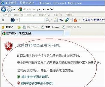 有的時候打開Google網站的總會提示網頁證書錯誤,導致打不開,請選擇繼續瀏覽此網站即可,檢查均沒有效果,對于此類問題似乎是網頁本身所引起的,因為筆者每次登陸谷歌賬戶才會出現此類問題,主要是因為其首頁為google.com.hk,但登陸后的界面又變為google.com,很容易導致證書變換導致的證書錯誤。