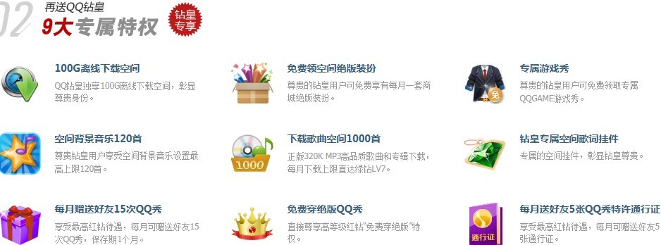 綠鉆:綠鉆主要與QQ音樂以及QQ空間背景音樂相關,開通QQ綠鉆可以下載QQ音樂中的高品質音樂以及可以為QQ空間設置背景音樂以及上傳音樂等等。