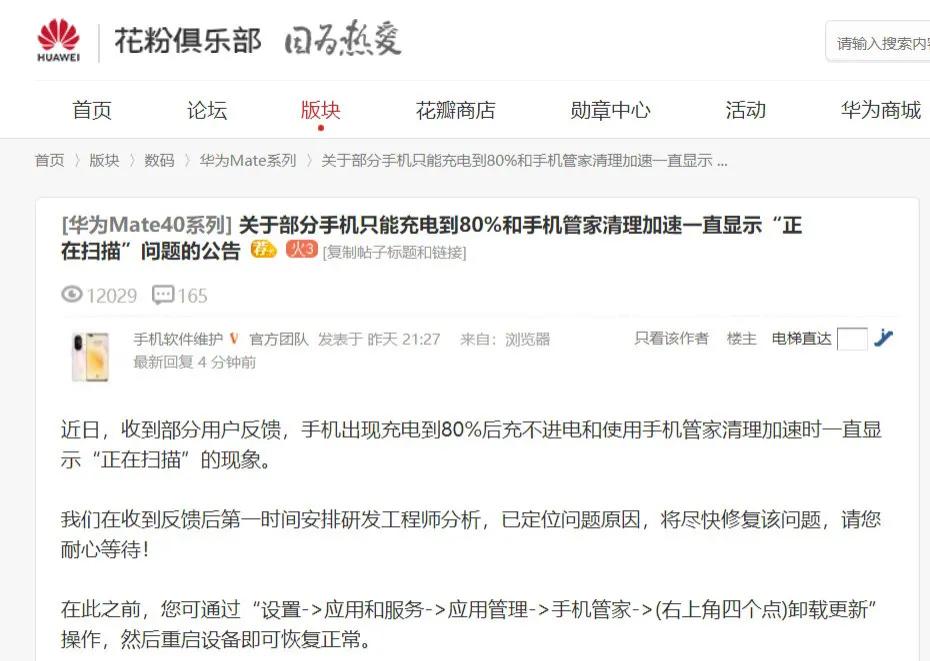 華為回應(yīng)手機(jī)只能充電到80%:將盡快