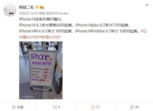 iPhone14預(yù)售價(jià)現(xiàn)身 6.1英寸6699元