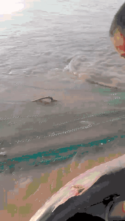 百斤大蟒蛇潛伏在村民魚塘內偷吃