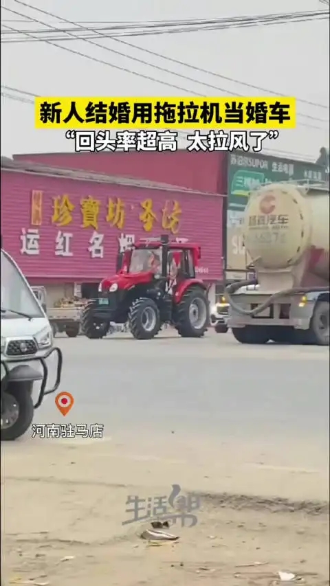 新人結婚用拖拉機當婚車 拍攝者:迎