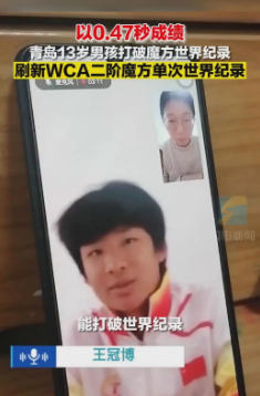 0.47秒!13歲男孩打破魔方世界紀(jì)錄