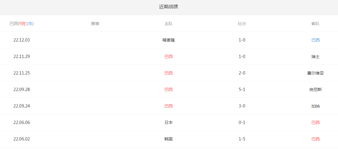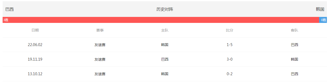 2022年世界杯1/8決賽:巴西vs韓國 比