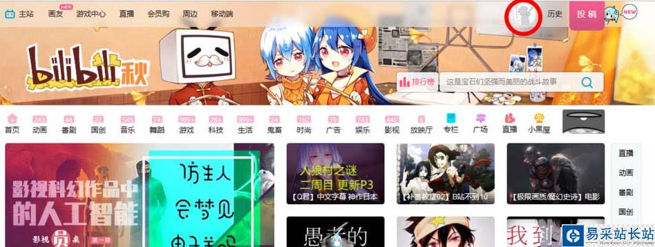 1、打開B站網(wǎng)頁端,并點擊右上角紅色圈內(nèi)的人形進行登陸(注:紅圈是我畫的,實際頁面不存在,后面的步驟也是一樣)