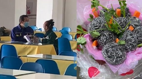 永不生銹!食堂大爺送大媽鋼絲球玫瑰
