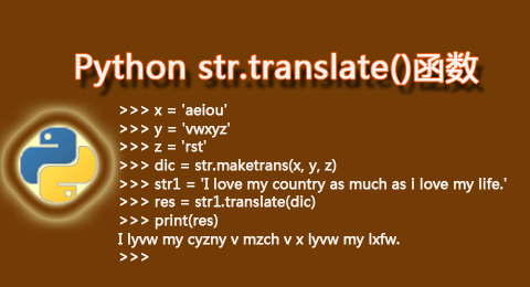 前面說過,maketrans()函數(shù)主要是為translate()函數(shù)生成轉(zhuǎn)換的字符映射表,下面的例子將演示兩者如何配合使用的。