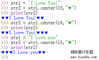 str2 = str1.center(15,"♥") #width與字符串長度的差為5