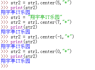 (1)字符串長度為奇數時,center()函數會把多出的字符填充在字符串的右側;