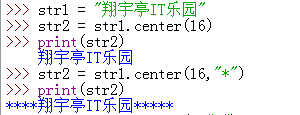 (2)字符串長度為偶數時,center()函數會把多出的字符填充到字符串的左側。
