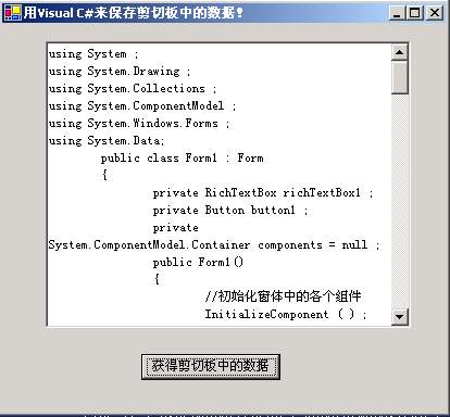this.Text = "用Visual C#來保存剪切板中的數據!";