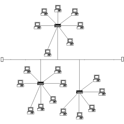 通過橋接器與路由器把不同的子網或LAN連接起來形成單個總線或環型拓撲結構,這種網通常采用光纖做主干線。