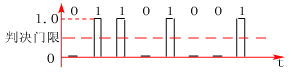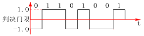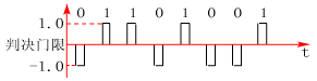 a)單極性不歸零碼,無電壓表示"0",恒定正電壓表示"1",每個碼元時間的中間點是采樣時間,判決門限為半幅電平。