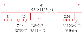 Bell系統的T1載波利用脈碼調制PCM和時分TDM技術,使24路采樣聲音信號復用一個通道。每一個幀包含 193位,每一幀用 125us時間傳送。T1系統的數據傳輸速率為1.544Mbps。