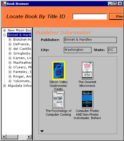 要全面理解本示例控件中的所有代碼,您應該了解它在應用程序中的運行情況。包含的示例應用程序使用 pubs.mdb Access 數據庫,并說明 Tree 控件如何與其他數據綁定控件一起創建 Windows 應用程序。本例中,尤其值得注意的主要功能包括樹與其他綁定控件的同步以及對數據源執行搜索時樹節點的自動選擇。