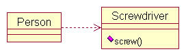 (3)依賴(Dependency) :人依賴螺絲刀 (虛線箭頭)