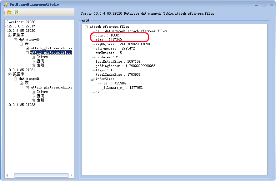 模擬2個shard服務和一個config服務, 均運行在10.0.4.85機器上,只是端口不同: