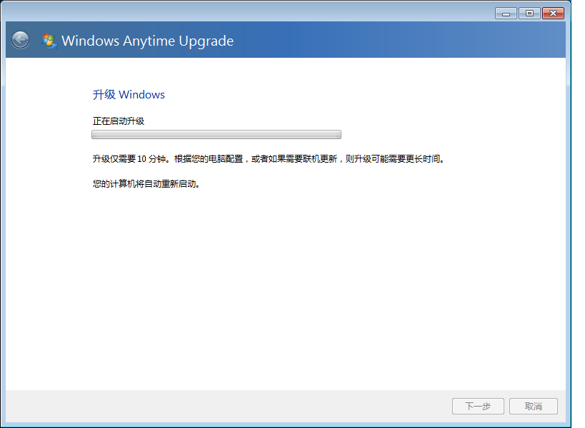 (4)輸入完升級密鑰后,系統將驗證升級密鑰并自動升級,這個過程根據你自己電腦的配置,可能需要的時間要長一些。
