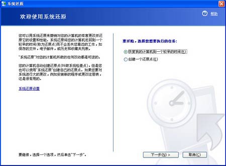 打開“系統還原向導”,選擇“恢復我的計算機到一個較早的時間”(圖3),點擊“下一步”,選擇好日期后(圖4)再跟著向導還原即可。