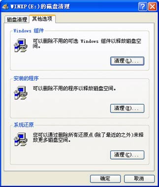 Windows XP中還原點包括系統自動創建和用戶手動創建還原點。當使用時間加長,還原點會增多,硬盤空間減少,此時,可釋放多余還原點。打開“我的電腦”,選中磁盤后鼠標右擊,選擇“屬性”/“常規”,單擊“磁盤清理”(圖7),選中“其他選項”選項卡(圖8),在“系統還原”項單擊“清理”按鈕,單擊Y即可。