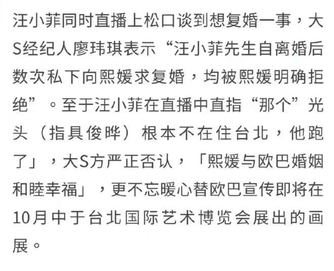汪小菲稱還愛大S?傳具俊曄已經跑了