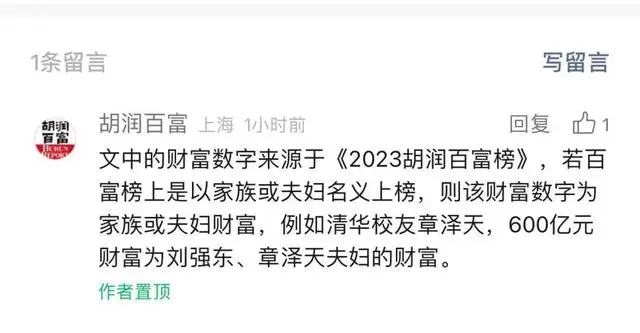 章澤天凈資產(chǎn)600億?胡潤百富回應(yīng):為