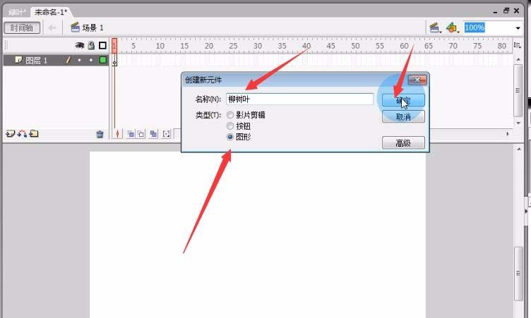 1、這個(gè)連接是如何制作樹葉兒的方法。好,接下來,首先新建一個(gè)元件圖形元件,取名為柳樹葉。點(diǎn)擊確定。。