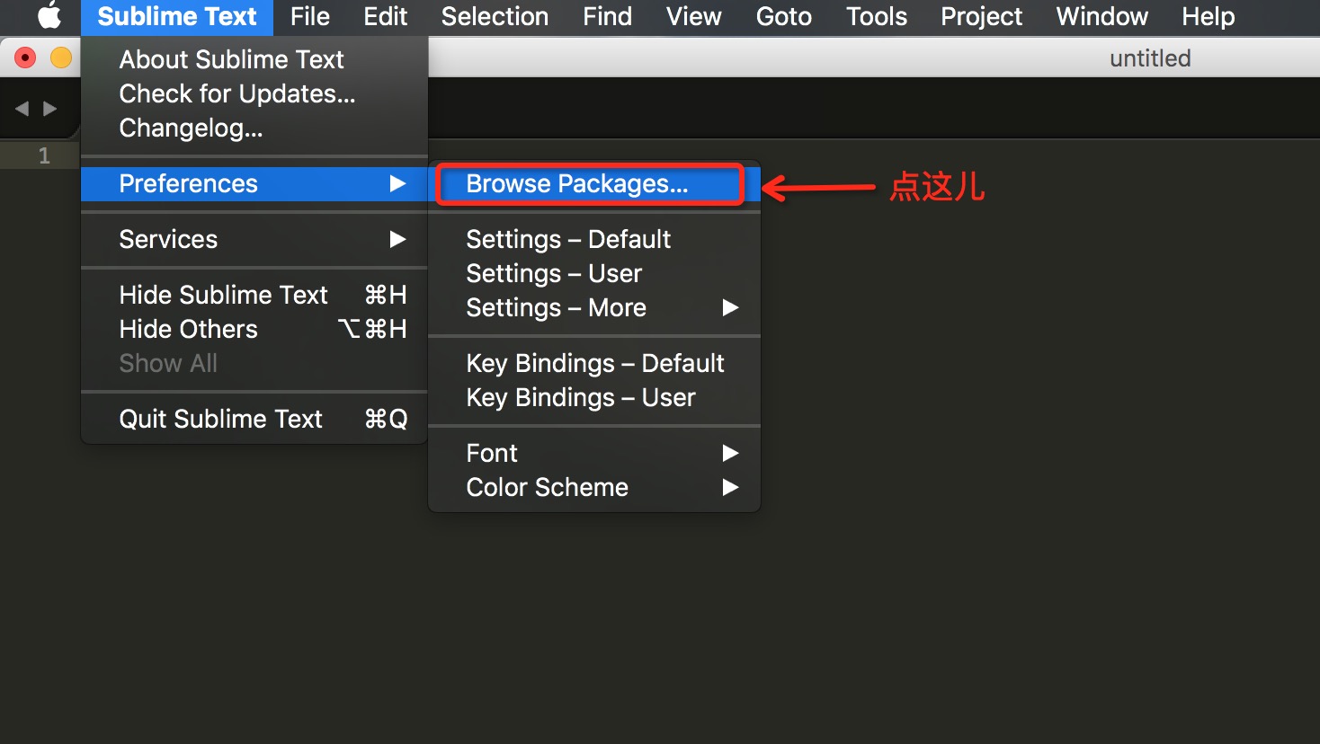 第一步:點擊 Sublime Text -> Preferences -> Package Control(或者快捷鍵 Cmd+Shift+P)啟動 Package Control