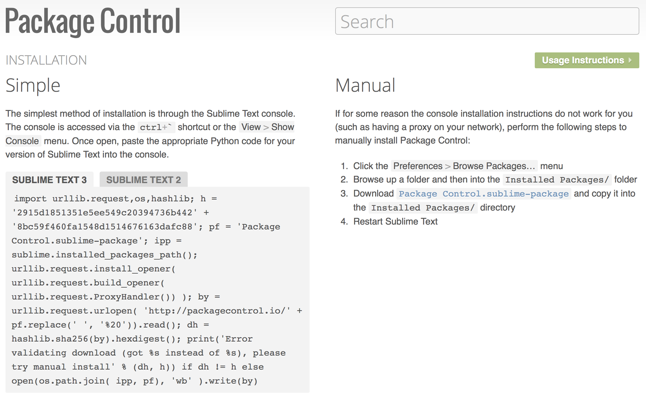 進入Package Control的官網:https://packagecontrol.io