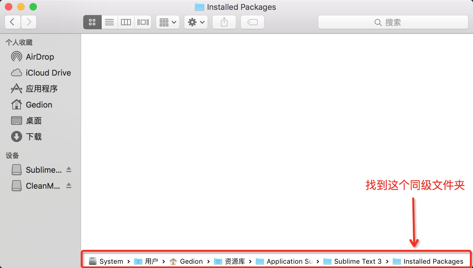 需要向上查找同級文件夾『Installed Packages』