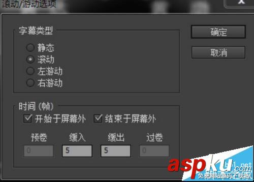 1、新建一個“滾動字幕”序列。在菜單欄中單擊字幕,選擇新建字幕—默認滾動字幕,然后將彈出的新建字幕對話框的參數設置如圖1所示。