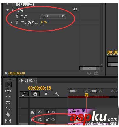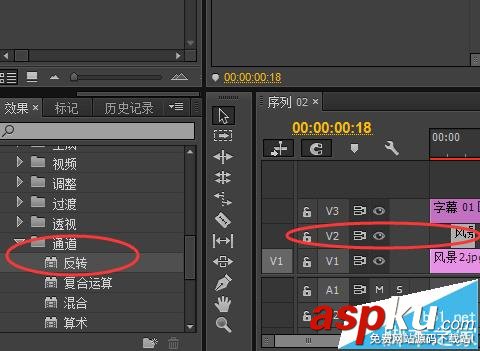 4、制作底片效果。將原素材再拖一次到視頻二軌道,右鍵“持續時間”把素材更改為4幀(可根據需要自己進行調節),在視頻特效菜單中選擇“通道”中的“反轉”或“反相”(不同pr的版本名字有所差別),可以在“效果控件”中調節底片的效果。
