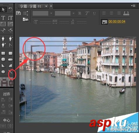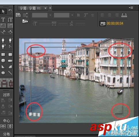 2、建立相機”取景框“。打開“新建字幕”,也可以直接快捷鍵“Ctrl+t”打開字幕面板。然后在字幕框的左邊的工具欄選擇“直線工具“,畫出相機取景框的四個邊角,可以畫出一個然后再進行復制粘貼。關閉字幕并將其拖到視頻三軌道。