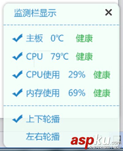 炎炎夏日,溫度太高,我們?nèi)藭?huì)覺得渾身無力;電腦也是一樣,溫度太高會(huì)出現(xiàn)卡機(jī)、死機(jī)、自動(dòng)關(guān)機(jī)等癥狀。所以我們應(yīng)該隨時(shí)查看電腦的溫度情況,如出現(xiàn)警示溫度,就應(yīng)該引起重視并采取相應(yīng)措施給愛機(jī)降溫。將驅(qū)動(dòng)人生的溫度監(jiān)控功能打開,讓它在任務(wù)欄上下輪播或左右輪播電腦CPU、主板等的溫度情況,一旦發(fā)現(xiàn)異常溫度,可馬上做出對(duì)應(yīng)措施。