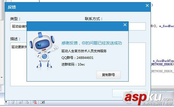 然后問題反饋成功后會(huì)有一個(gè)彈窗提醒,你可以選擇加入驅(qū)動(dòng)人生的技術(shù)群,尋求技術(shù)大神幫你及時(shí)解決,也可以留下問題反饋等著驅(qū)動(dòng)大神們聯(lián)系你解決。小編私下認(rèn)為這個(gè)功能更新是極好的,完全響應(yīng)用戶的訴求。