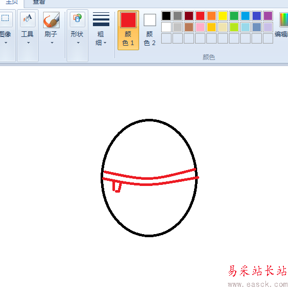 2、選擇紅色,用曲線工具畫2條曲線作為圍巾;