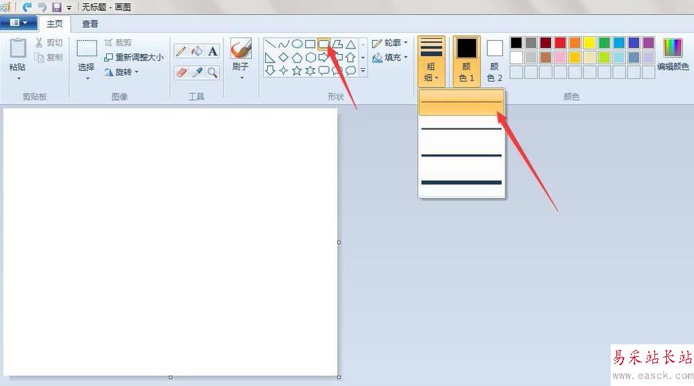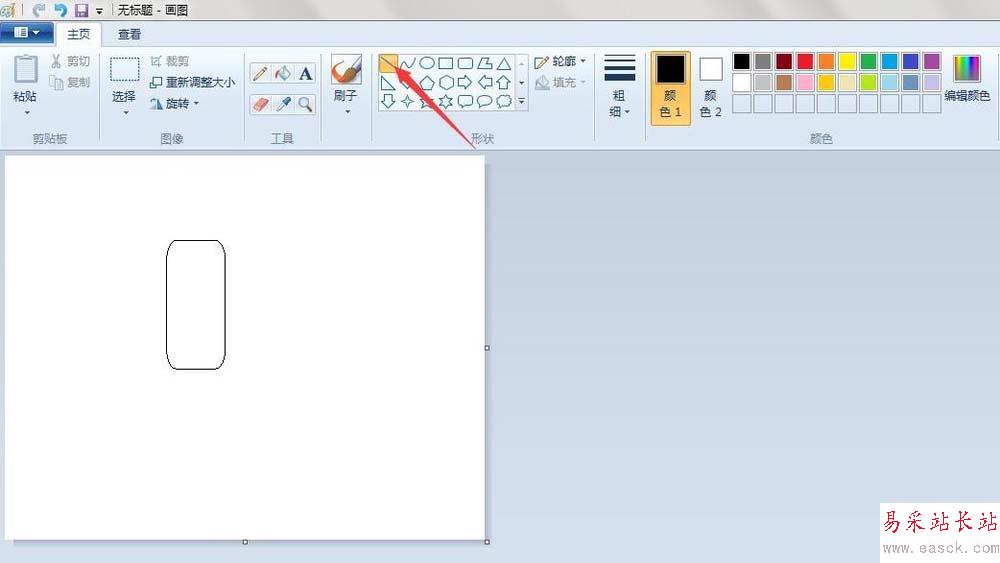 2、冰棒輪廓:點擊“圓角矩形”按鈕,線條粗細(第一個),先在“畫紙”適當位置上畫上一個長形的圓角矩形。