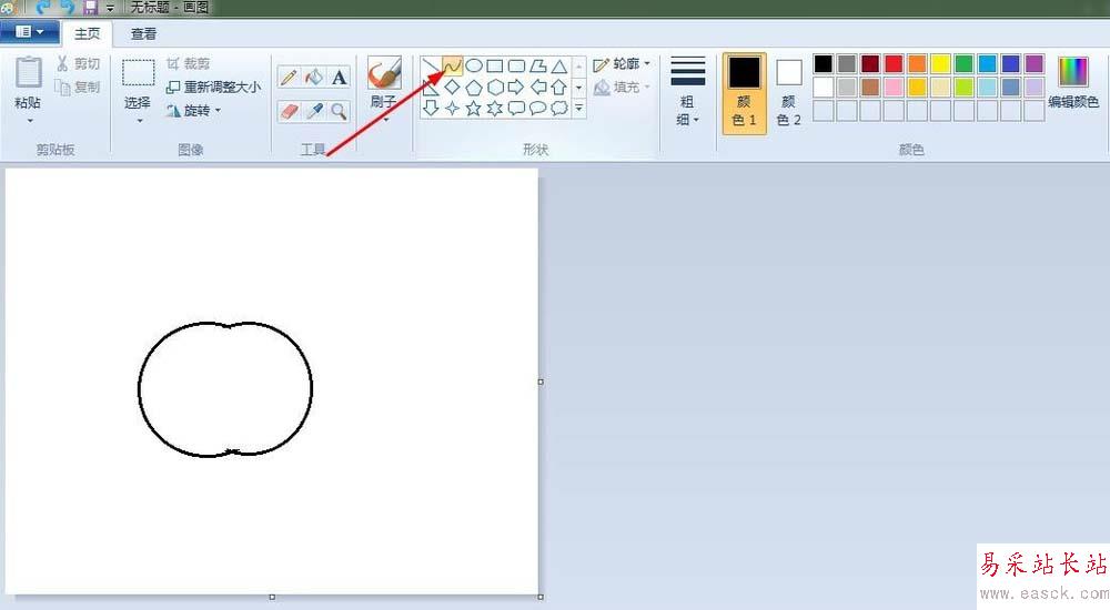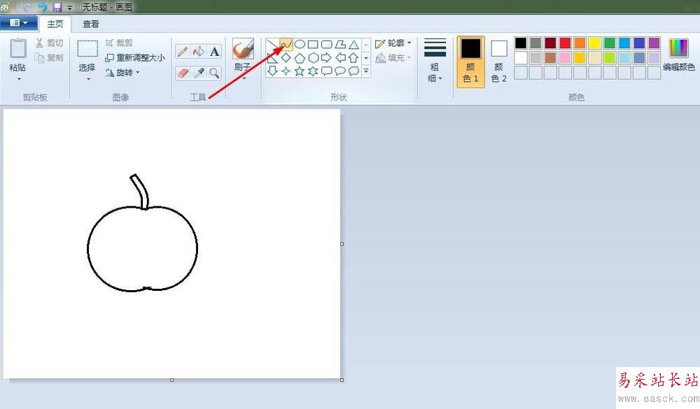 3、蘋果把:點擊“曲形”按鈕,畫出蘋果把。