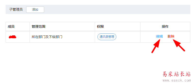 7、保存成功后,進(jìn)入子管理員管理可以進(jìn)行編輯或刪除。