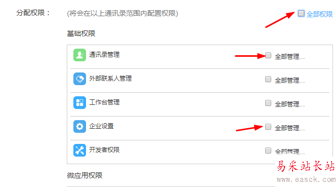 6、分配權(quán)限,設(shè)置只些模塊中有管理權(quán)限,在對應(yīng)右邊的全部管理選中即可。
